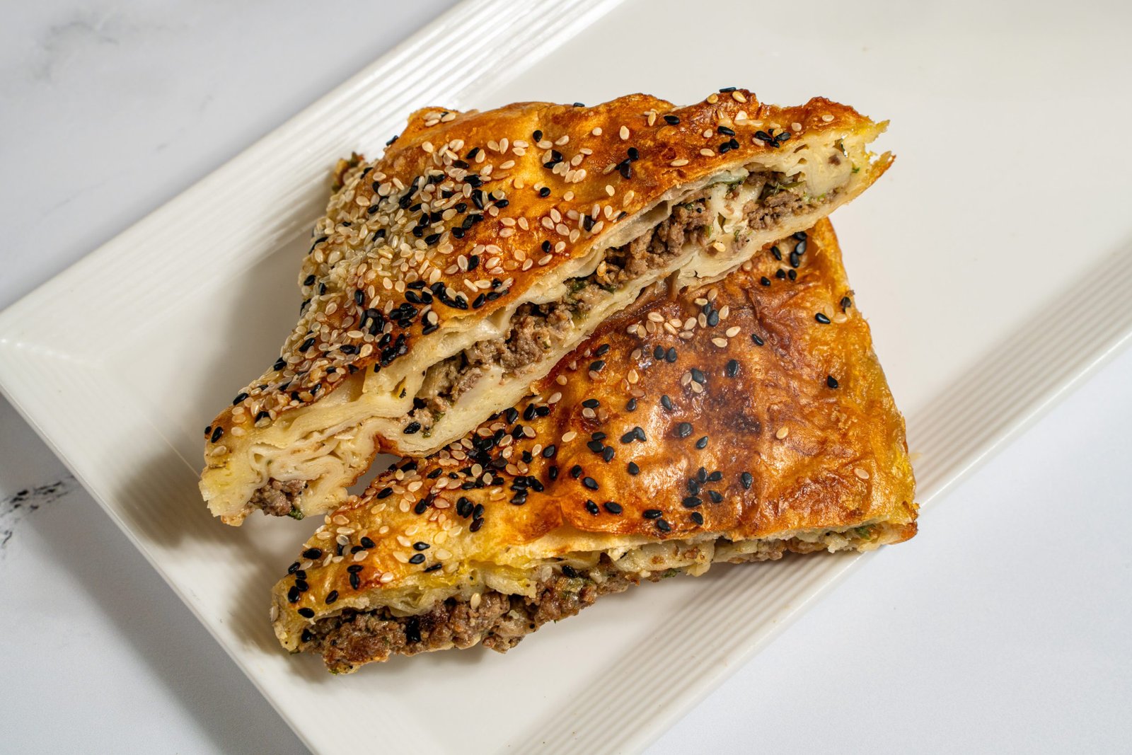 Our handmade borek is prepared fresh daily with delicate, flaky phyllo dough and generously filled with your choice of spinach and cheese, classic cheese, seasoned ground beef with mozzarella, or chicken and vegetables. Baked to golden perfection in our oven, each bite delivers a warm, savory, and authentic Turkish bakery flavor.